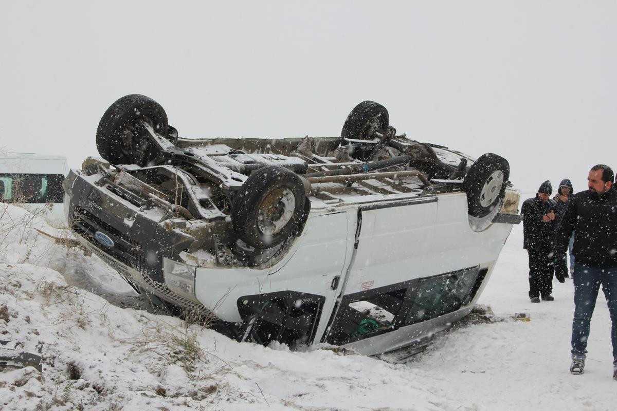 Alınan bilgiye göre, Şeyh Muhammet Alagöz idaresindeki 12 D 0012 plakalı minibüs, Bingöl-Genç karayolu Baylaz Petrol mevkisinde buzlanma nedeniyle sürücüsünün direksiyon hakimiyetini yitirmesi sonucu devrildi.