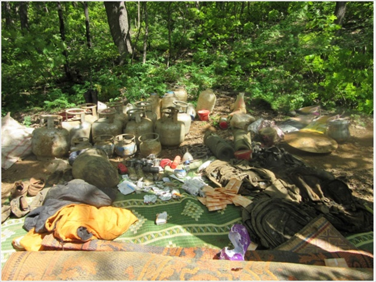Operasyonlarda tespit edilen 10 sığınakta yapılan aramalarda, biri el yapımı patlayıcı ile tuzaklanmış 2 düdüklü tencere, dürbün, örgütsel doküman, kondom, doğum kontrol hapı, ilaç ve çok sayıda yaşam malzemesi ele geçirildi.