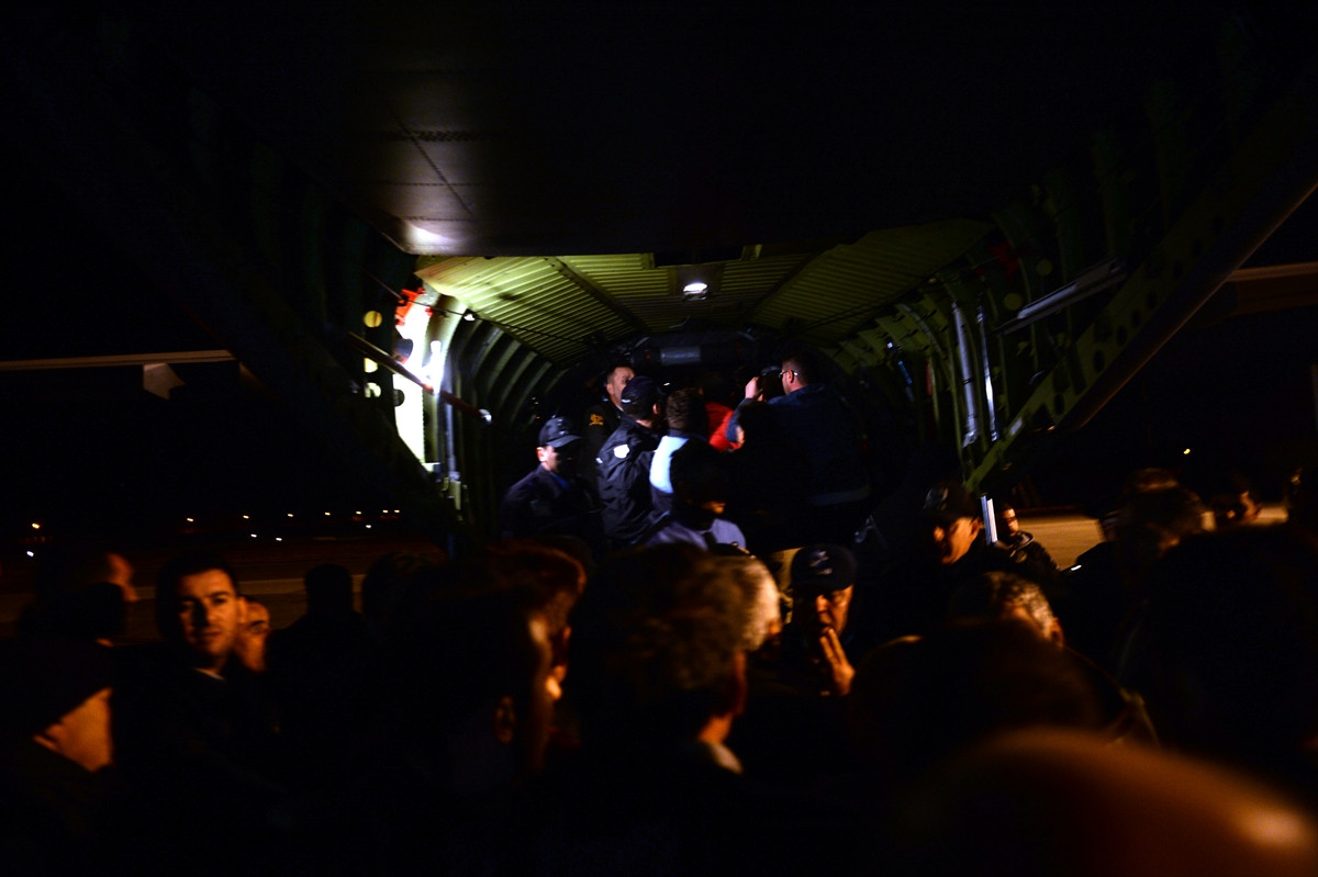 Bir süre sonra askerler uçaktan tabutu alarak, omuzlarında cenaze arabasına kadar taşıdı.