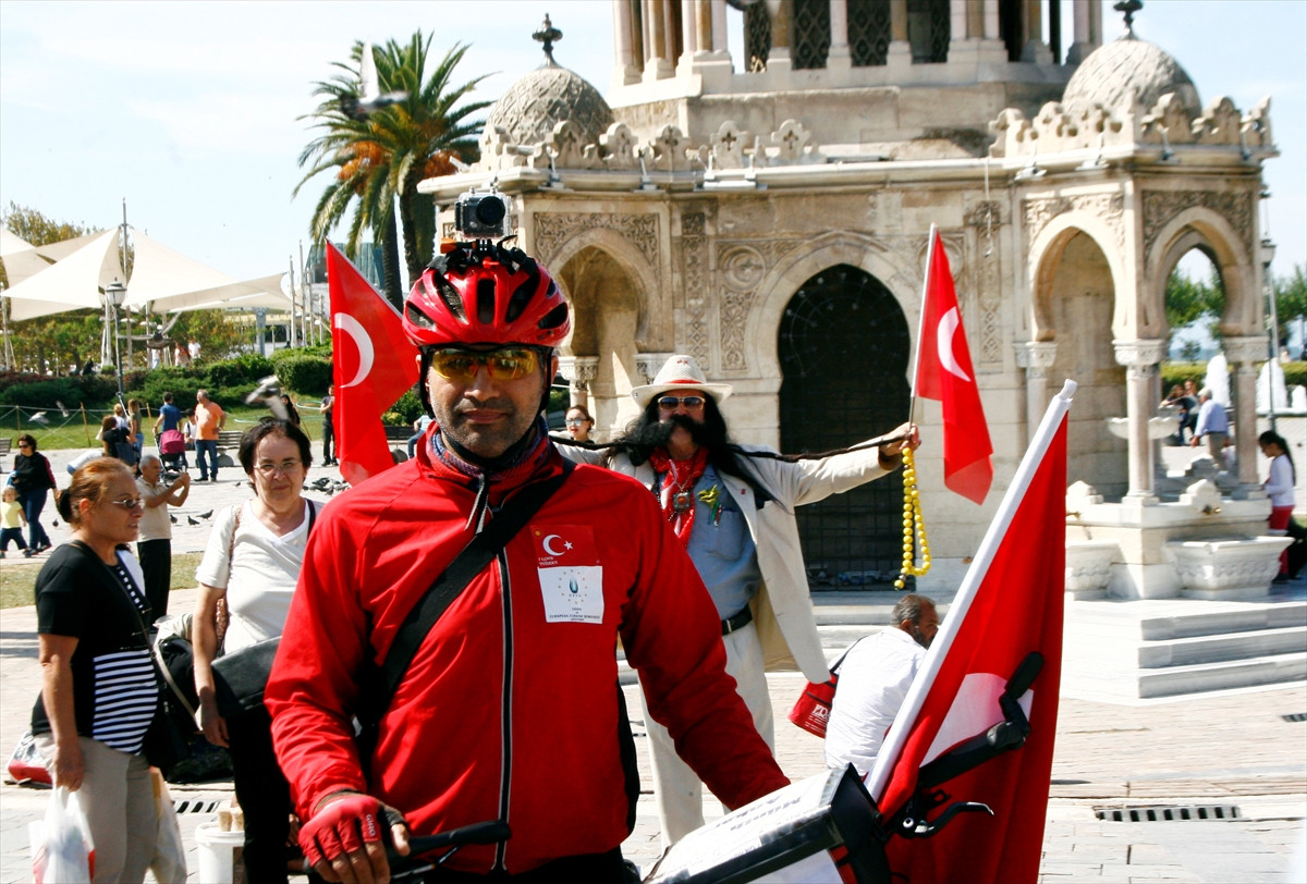 İZMİR (AA) - Fetullahçı Terör Örgütü'nün (FETÖ) darbe girişimi ile PKK terörüne tepki için Almanya'dan bisikletle yola çıkan Abdurrahman Serdar Çakmak, İzmir'e geldi.