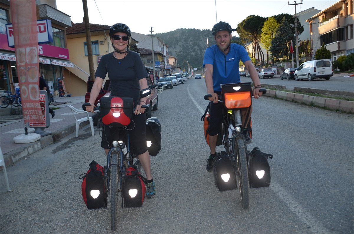 KASTAMONU (AA) - Bisikletleriyle Singapur’a gitmek için Frankfurt’tan yola çıkan Alman çift, Kastamonu’nun Hanönü ilçesine ulaştı.