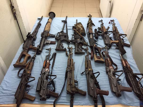 Etkisiz hale getirilen teröristlerin üzerinde yapılan aramalarda, 2 adet Kaleşnikof piyade tüfeği ve 4 adet el bombası bulundu.