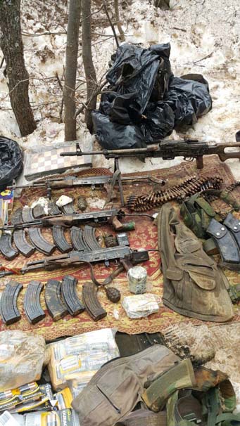 Terör örgütünün Bitlis bölge yapılanmasında üst düzey sorumlusu olduğu saptanan teröristin yer göstermesi ile 2 adet sığınakta arama yapıldı. Aramalarda toprağa gömülü mavi renkli bidon içerisinde 1 adet lav silahı, 493 adet Kaleşnikof piyade tüfeği fişeği, 2 adet Kaleşnikof piyade tüfeği şarjörü, 2 adet hücum yeleği, 1 adet avcı çukuru, 1 adet Samsung marka cep telefonu, 3 ayrı paket içerisinde anfo olduğu değerlendirilen yaklaşık 1 kilogram patlayıcı madde, 9 adet fünye, 8 adet elektrikli fünye, 30 gram C-4 plastik patlayıcı madde ile yaklaşık 1 ton yaşam malzemesi tespit edildi.