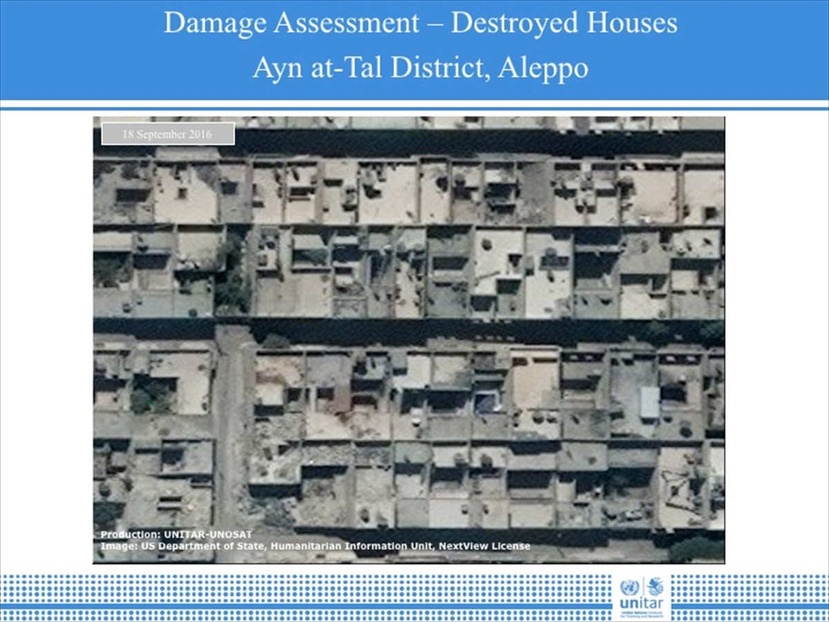 BM Eğitim ve Araştırma Enstitüsü'ne (UNITAR) bağlı Operasyonel Uydu Yönetim Programı (UNISAT), ABD ve Rusya arasında sağlanan çatışmaların sonlandırılması anlaşmasının sona ermesinden sonra son 2 haftada meydana gelen hasarı, yayımladığı uydu fotoğrafları ile gösterdi.