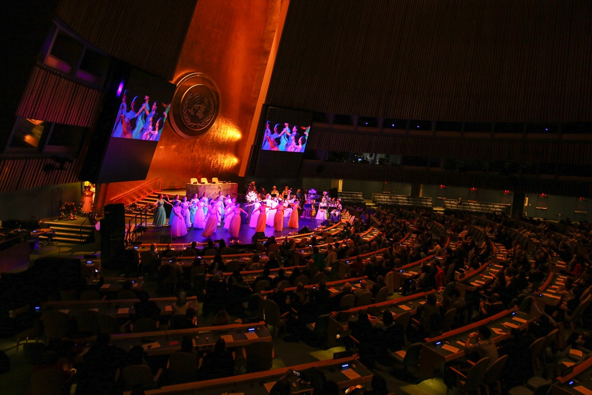 BİRLEŞMİŞ MİLLETLER (AA) - Uluslararası Türk Kültürü Teşkilatı'nın (TÜRKSOY), organizasyonuyla bir araya gelen yaklaşık 150 sanatçı, BM Genel Kurul Salonu'nda nevruz konseri verdi.