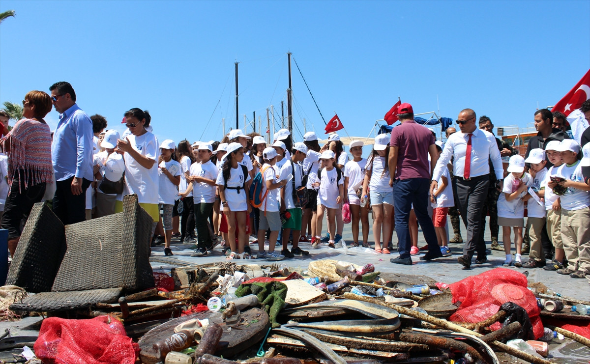 Dalgıçların yardımıyla teknelere taşınan atıklar, Bodrum Belediye Meydanı'nda kurulan alana getirildi. Bir süre burada sergilenen atıklar, daha sonra çöplük alanına götürüldü.