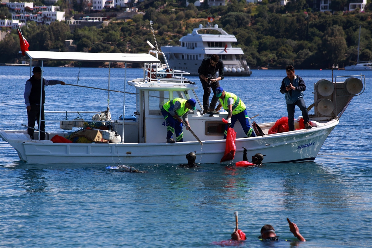 MUĞLA (AA) - Türkiye'nin önemli turizm merkezlerinden Muğla'nın Bodrum ilçesinde deniz dibi ve kıyı temizliği yapıldı.