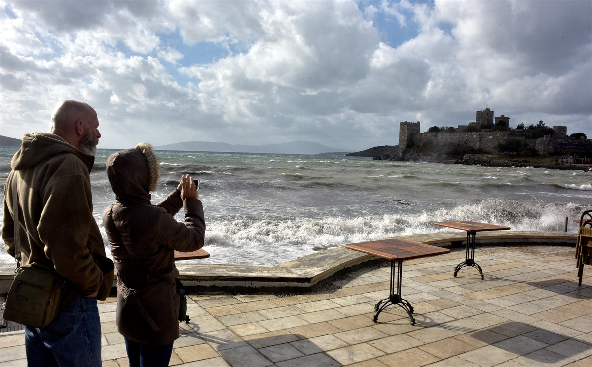 MUĞLA (AA) - Bodrum'da, saatteki hızı 60 kilometreyi bulan fırtına, günlük yaşamı olumsuz etkiliyor.