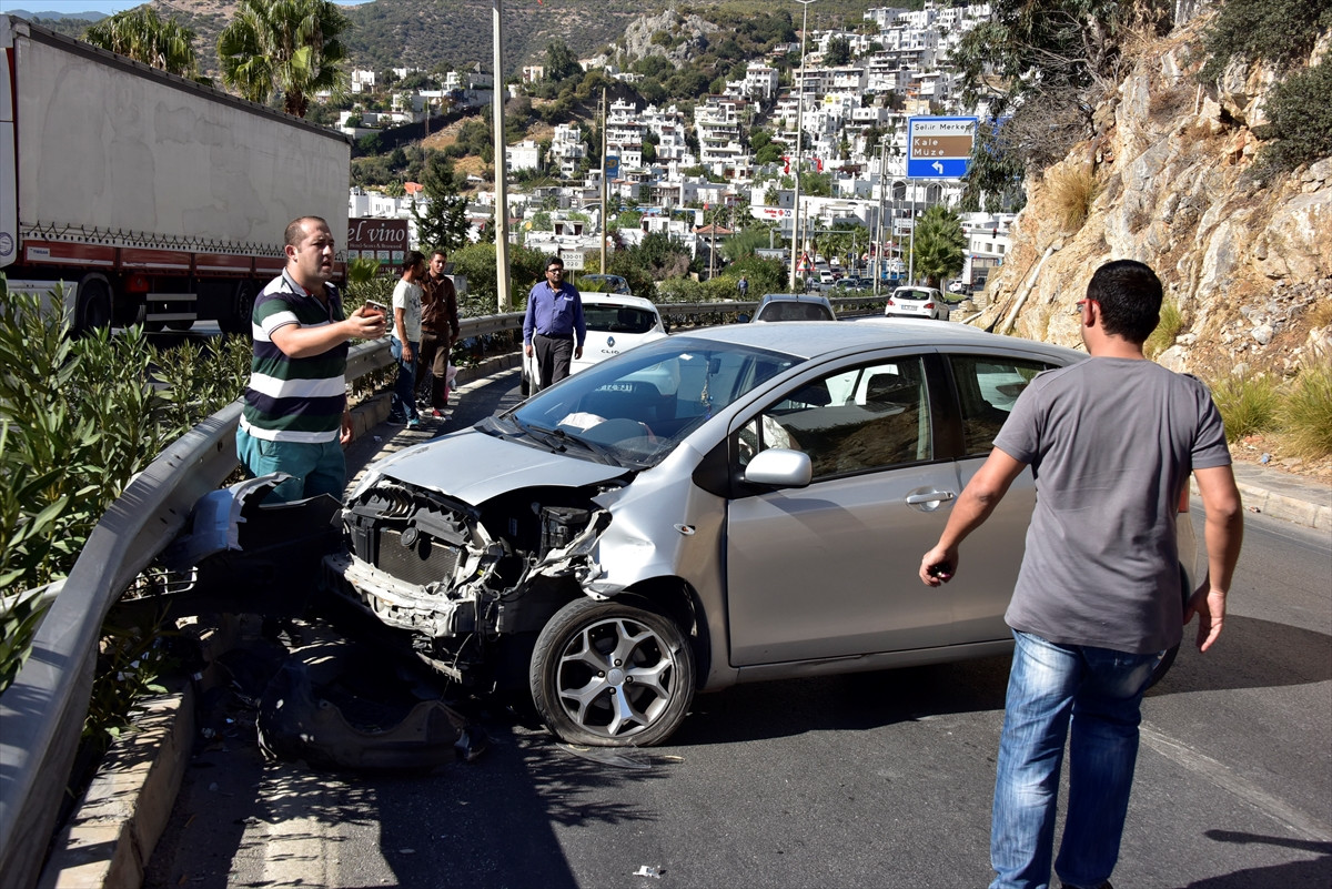 MUĞLA (AA) - Muğla'nın Bodrum ilçesinde, otomobilin bariyerlere çarpması sonucu 2 kişi yaralandı.