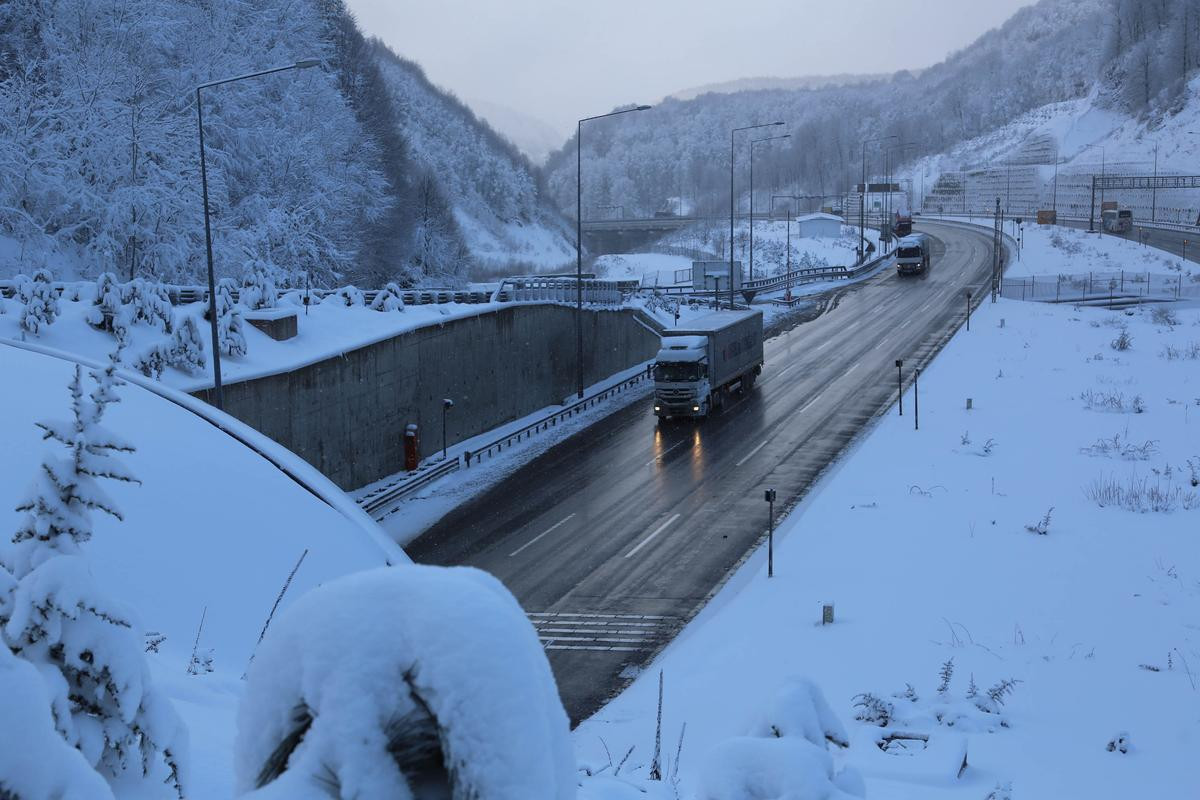 TEM Otoyolu'nda ise Bolu Dağı Tüneli ve Viyadükler mevkilerinde kar yağışı aralıklarla sürüyor.