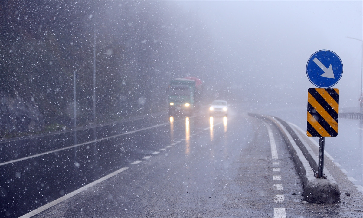 Bolu Dağı'nın D-100 karayolu geçişinde yoğun sis ve kar yağışı etkili oluyor. Bölgede sabah saatlerinden itibaren etkili olan sağanak, yerini kar yağışına bıraktı. Yoğun sis nedeniyle görüş mesafesi yer yer 25 metreye kadar düşerken, karayolunun yüksek kesimlerinde bulunan Bakacak, Bıçkıyanı, Karanlıkdere, Seymenler ve Heyelan mevkisinde kar yağışı etkisini sürdürüyor. Trafik ekipleri, sürücüleri yakın takip ve aşırı hız konusunda uyarırken karayolları ekipleri tuzlama çalışmalarına başladı. Meteoroloji yetkilileri, kar yağışının akşam saatlerinde artmasının beklendiğini bildirdi.