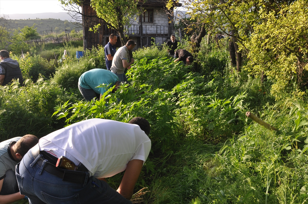 BOLU (AA) - Bolu merkezli olarak İstanbul, Ankara, Zonguldak, Sakarya, Kocaeli ve Düzce'de yapılan operasyonda gözaltına alınan 45 zanlıdan birinin ölen dedesine ait evin bahçesinde Hint keneviri ele geçirildi.
