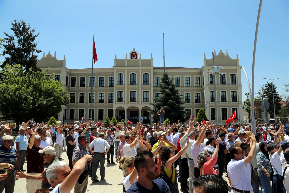 BOLU (AA) - CHP'li 30 milletvekili Bolu'ya gelerek, Bolu İl Milli Eğitim Müdürü Yusuf Cengiz'e, "10. Yıl Marşı'nı yasakladığı" iddiasıyla tepki gösterdi.