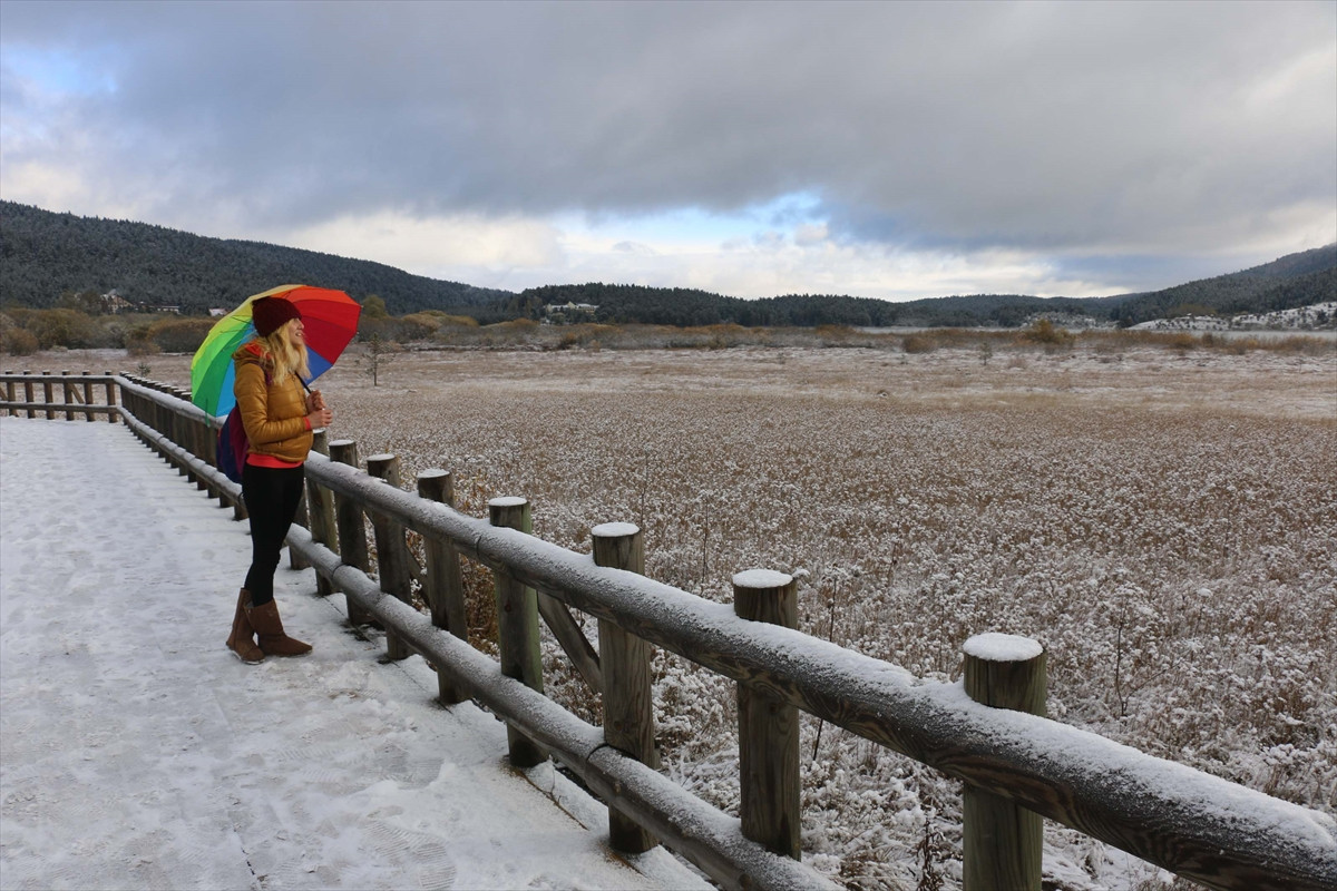 Sonbahar'da renk cümbüşünün yaşandığı Gölcük, Abant ve Yedigöller, kar yağışının ardından beyaza boyandı.