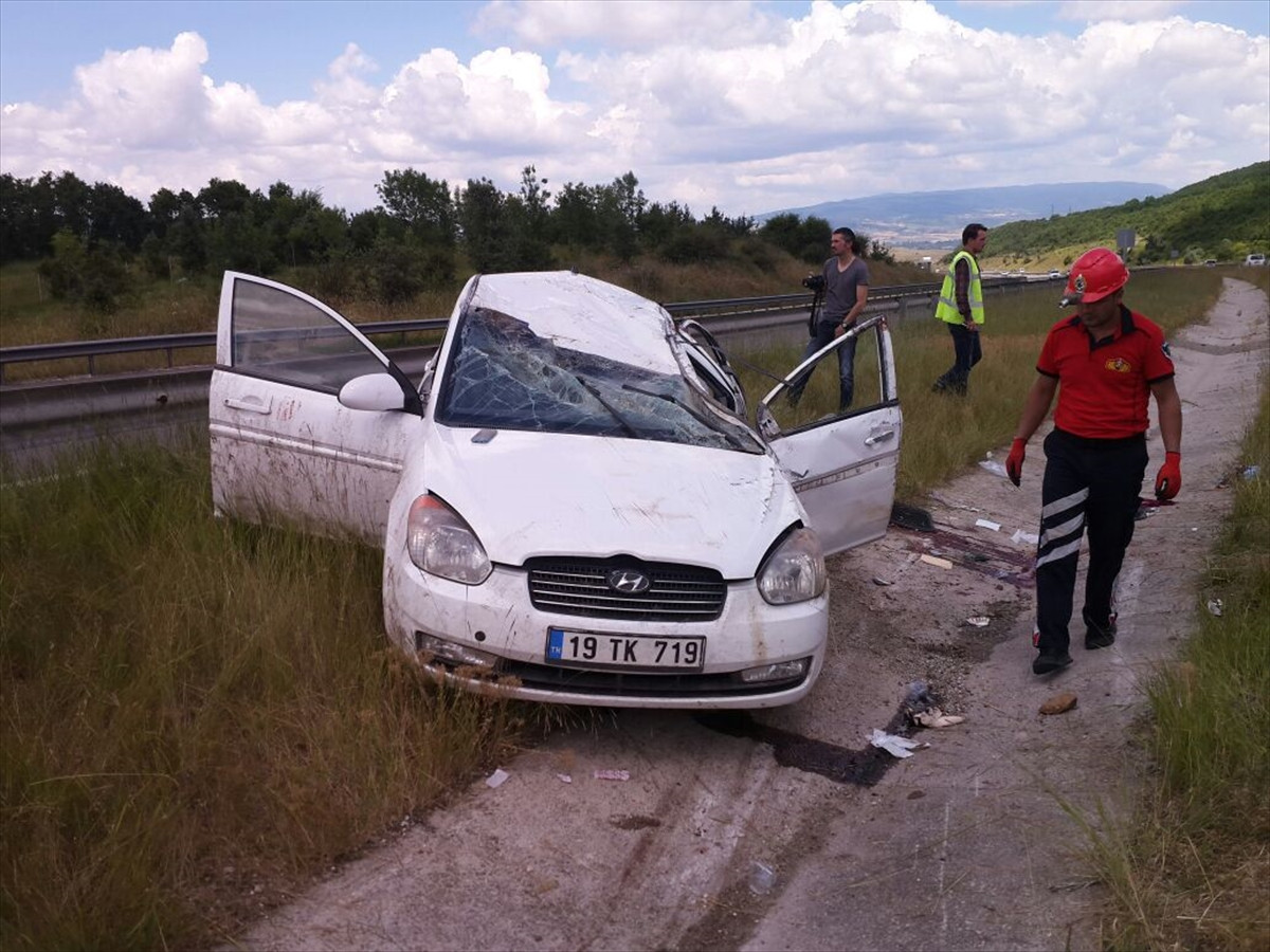 Alınan bilgiye göre, TEM otoyolunda Ankara istikametine giden Hakan Bekir Vural idaresindeki 19 TK 719 plakalı otomobil, sürücüsünün direksiyon hakimiyetini kaybetmesi sonucu refüje çarparak takla attı.