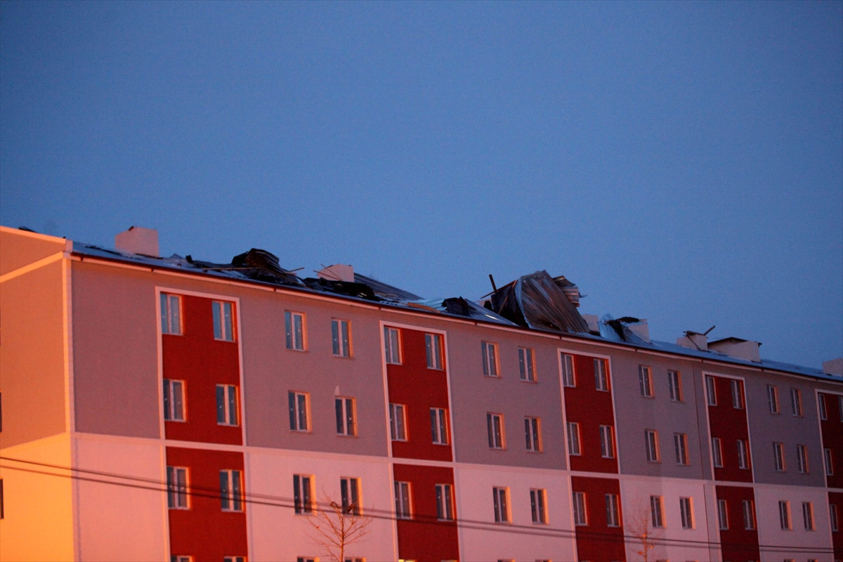 Alınan bilgiye göre, il genelinde etkili olan kuvvetli lodos nedeniyle Doğancı Mahallesi mevkisinde bulunan bir yurt inşaatının çatısında bulunan malzemeler uçtu.