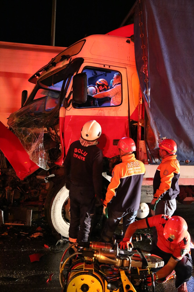 Alınan bilgiye göre, İstanbul'dan Bolu istikametine seyreden İlyas İci idaresindeki X 3712 BC yabancı plakalı tır, D-100 karayolu Bolu Dağı kesimindeki Abant kavşağı yakınlarında, önünde seyreden Turhan Sandal'ın kullandığı 33 BTN 11 plakalı kamyona arkadan çarptı.