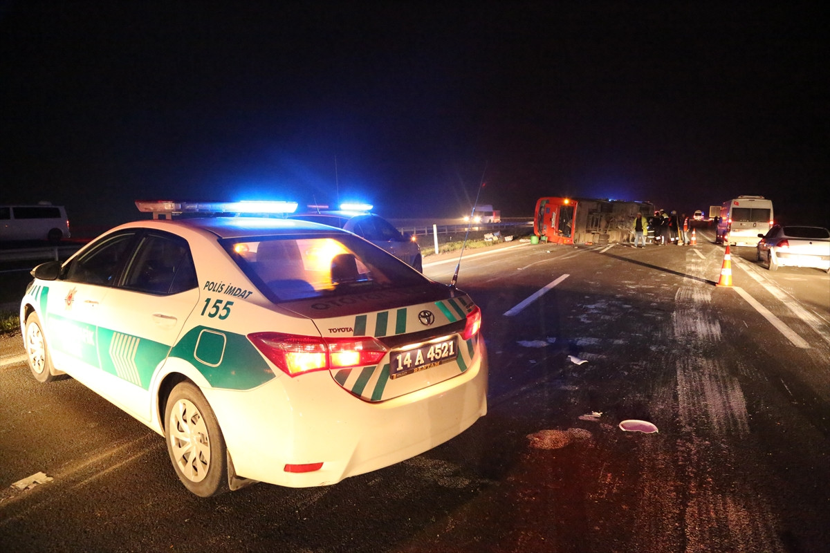 Kazada, otobüs sürücüsü ile aynı araçta bulunan 21 kişi yaralandı. Yaralılar olay yerine gelen ambulanslarla Bolu'daki hastanelere kaldırıldı.