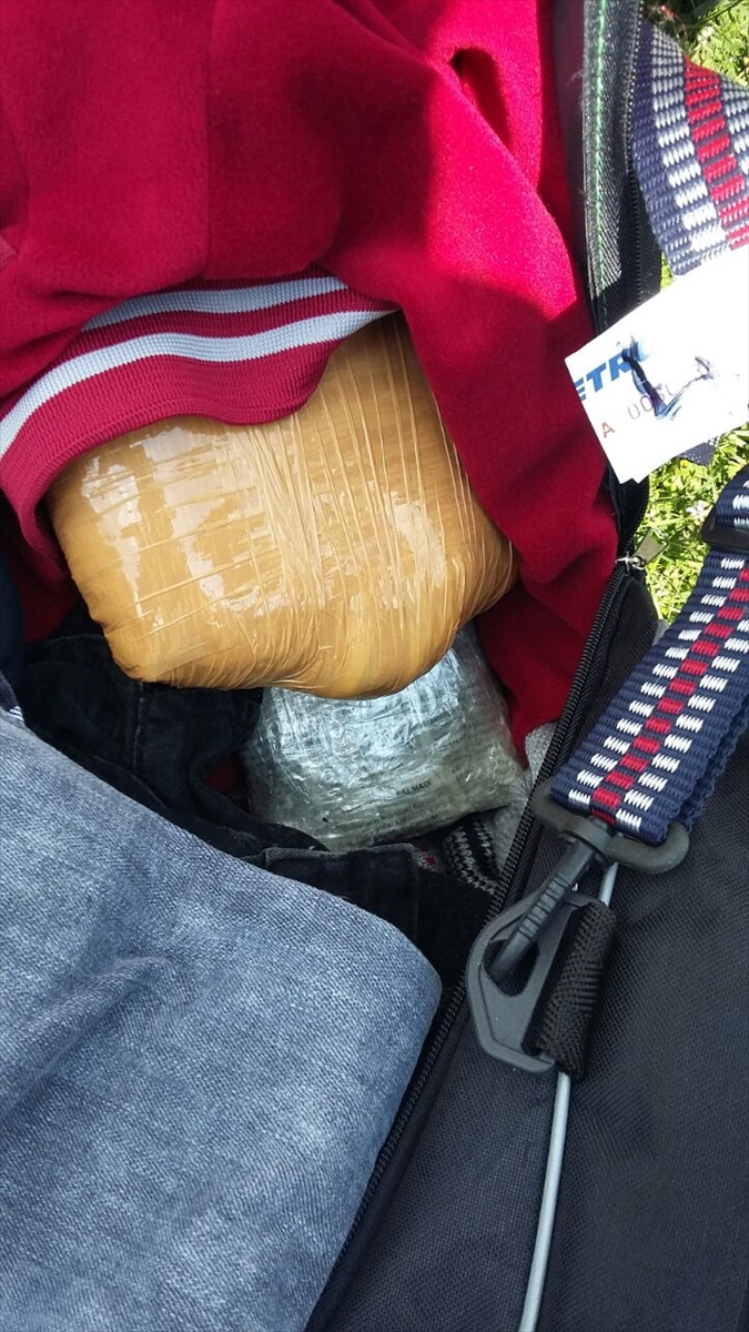 Otobüsün bagaj bölümünde yapılan aramada, bir yolcunun valizinin içerisinde 1,5 kilogram toz esrar ele geçirildi.