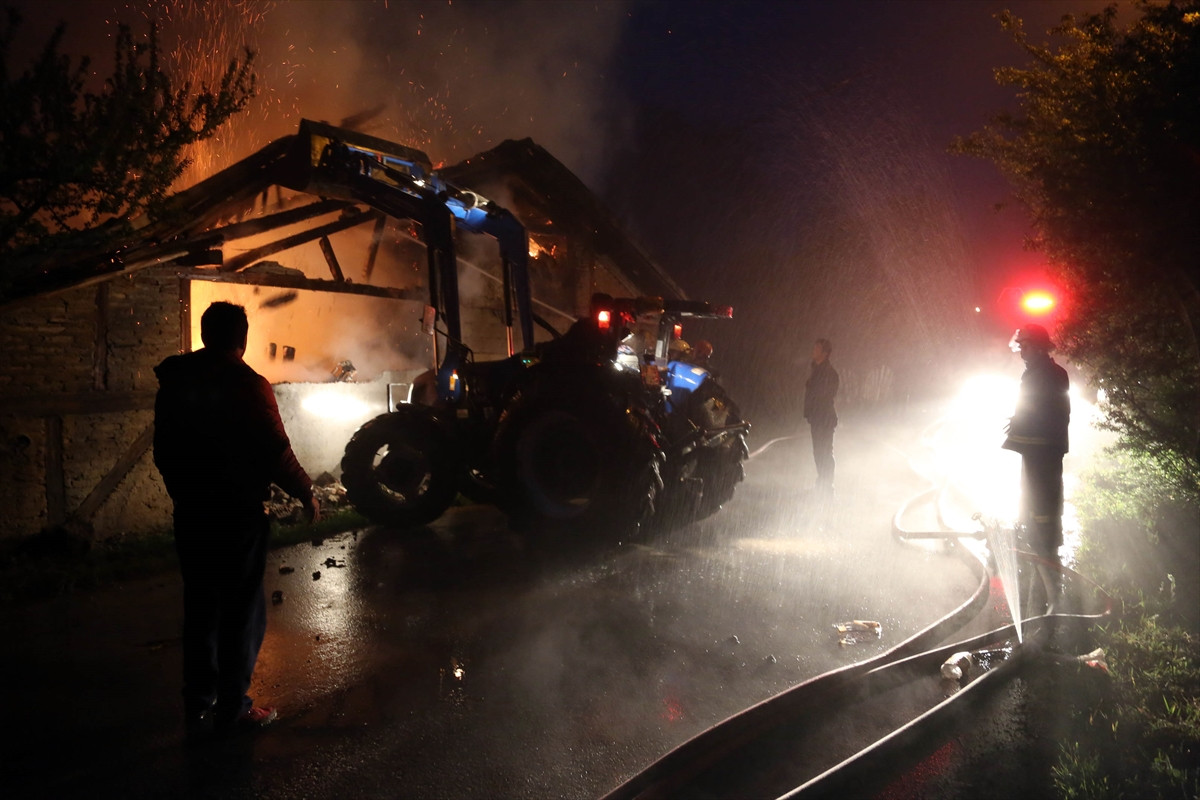 Olayda samanlık, ahır ve odunluk tamamen yandı.