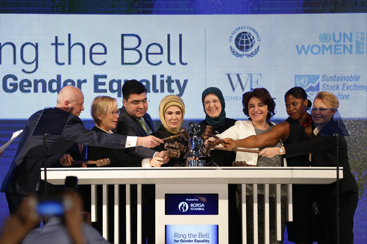 Cumhurbaşkanı Recep Tayyip Erdoğan'ın eşi Emine Erdoğan, kadın erkek eşitliğinin, cinsiyet adaleti gibi bir değer kriteriyle ele alınmasının önemini vurgulayarak, "Kadınların özel sorumlulukları hesaba katılmadan sağlanan eşitlik, bazı eşitsizlikler doğurabilir" dedi. Borsa İstanbul'da iş dünyasını toplumsal cinsiyet eşitliğini geliştirmeye ve kadınların ekonomik hayatta güçlenmesini desteklemeye çağırmak amacıyla 8 Mart Dünya Kadınlar Günü dolayısıyla gong töreni düzenlendi. Emine Erdoğan, Aile ve Sosyal Politikalar Bakanı Sema Ramazanoğlu, Borsa İstanbul Yönetim Kurulu Başkanı Talat Ulussever, Borsa İstanbul Genel Müdürü ve Üst Yöneticisi Tuncay Dinç, IFC Türkiye Direktörü Aisha Williams, Birleşmiş Milletler Kadın Birimi Avrupa ve Orta Asya Bölge Direktörü ve Türkiye Temsilcisi Ingibjorg Gisladottir, Koç Holding Üst Yöneticisi Levent Çakıroğlu, Suteks Grup Yönetim Kurulu Başkanı ve WEPs İş Dünyası Sözcüsü Nur Ger, Türkiye İş Kadınları Derneği Yüksek İstişare Konsey Başkanı Demet Sabancı Çetindoğan kadın erkek eşitliği için gong çaldı. Konuşmasına tüm kadınların 8 Mart Dünya Kadınlar Günü'nü kutlayarak başlayan Erdoğan, kadınların güçlenmesini hedefleyen bu anlamlı etkinliğin ekonominin can damarı olan Borsa İstanbul'da gündeme alınmasının Türkiye için memnuniyet verici olduğunu, iş dünyası liderlerinin, toplumsal cinsiyet eşitliğini ilerletecek şirket politikaları geliştirmesinin ülkenin geleceği için umut olduğunu vurguladı. Kadının güçlenmesi prensiplerinde yer alan 7 ilkeye imza koyan liderleri tebrik eden Erdoğan, şirketlerin yönetim kurullarında kadınlara daha çok yer verilmesi, tüm kadın ve erkeklere işte adil davranılması gibi ilkelerin daha iyi bir dünyanın müjdecisi olduğunu anlattı. Türkiye'de kadının güçlendirilmesi adına son 10 yılda "yetmez ama" denilecek pek çok önemli gelişme olduğunu ifade eden Emine Erdoğan, şöyle devam etti: "2004 ve 2010 yıllarında Anayasa’nın 10. Maddesi’nde yapılan değişiklikle, kadın erkek eşitliğini gözeten birçok düzenleme yapıldı. 2009'da Türkiye Büyük Millet Meclisi çatısı altında Kadın Erkek Fırsat Eşitliği Komisyonunun kurulması, bu konudaki siyasi kararlılığın göstergesidir. Bu tür düzenlemeler, kadınların güçlenmesi noktasında önemli sonuçlar vermiştir. 2002 seçimlerinde parlamentodaki kadın temsil oranı yüzde 4,4 iken, 7 Haziran 2015 seçimlerinde bu oran yüzde 17,82’ye çıkmıştır. Şu anki parlamentomuzu oluşturan 1 Kasım seçimlerindeyse 81 kadın vekil sayısıyla yüzde 14,73 oranında bir temsil gücüne sahip olduk. Siyasetteki kadın varlığının son 13 yılda yüzde 10’luk artış göstermesi önemli bir ilerlemedir. Türkiye’de, akademide kadın oranı ise dünya ortalamasının üzerindedir. 2015 verilerine göre, üniversitelerde kadın öğretim elemanı oranı yaklaşık yüzde 43’tür. Fakat isteriz ki kadınlarımız, cam tavan engelini aşarak üniversitelerin yönetim kademelerinde etkin şekilde var olabilsinler. Keza, kamu kurum ve kuruluşlarımızdaki yüzde 36 oranında kadın personelin, üst düzey karar verici konumuna yükselmesi, kadın duyarlılığının yaygınlaşması adına beklentimizdir." İş dünyasında kadın varlığına bakıldığında,kadın istihdam oranının son 10 yılda yüzde 20,8’den, yüzde 27,5’e yükseldiğini aktaran Erdoğan, kadınların işgücüne katılma oranının ise 8,3 puanlık artış gösterdiğini söyledi. Kadınların ekonomiye katkısını teşvik amacıyla, evde imal ettikleri ürünleri, iş yeri açmaksızın satışa sunmaları halinde vergiden muaf tutulmalarının, kadınlar için önemli bir motivasyon olduğunu dile getiren Erdoğan, "Aynı şekilde kadın girişimcilere pozitif ayrımcılık yapılarak, KOBİ kredileri için yüzde 75 olan kefalet oranı, kadınlar için yüzde 85 olarak planlanmıştır. Tüm bunlar, kadınlarımızın iş piyasasında etkinliğini artıracak düzenlemelerdir" diye konuştu. Dünya nüfusunun yüzde 49’unu kadınların oluşturduğunu, kadın ve erkeğin bir bütünün parçaları olduğunu ifade eden Erdoğan, şöyle devam etti: "Dünyada yaygın pratiğin aksine, birbirini tamamlaması ve birbirine destek vermesi beklenir. Cinsiyet adaletinin var olduğu bir dünya, kadın ve erkeğin birbirini tamamlayan özelliklerinin yansıdığı daha dengeli bir hayat vadetmektedir. Bu vesileyle, kadın erkek eşitliğinin, cinsiyet adaleti gibi bir değer kriteriyle ele alınmasının önemi üzerinde durmak isterim. Zira, kadınların özel sorumlulukları hesaba katılmadan sağlanan eşitlik, bazı eşitsizlikler doğurabilir. Söz gelimi, kadınların çocuk sahibi olması ve çocuğun yetiştirilmesinde toplumun benimsediği bazı geleneksel roller, bir takım ayrıcalıklar gerektirir. Nitekim, hükümetin son yıllarda yaptığı düzenlemeler bu anlamda önemlidir. Doğum nedeniyle ücretsiz izinde geçen sürenin, memuriyet kıdeminde değerlendirilmesi, bunlardan bir tanesidir. Doğuma bağlı yarı zamanlı çalışma imkanı ve babalık izin süresinin artırılması da kadınlarımızın hayatını kolaylaştıracak düzenlemelerdir. Elbette tüm bu uygulamalar, erkeklerin vereceği destek ve yüksek bir farkındalıkla gerçek amacına ulaşabilir. Bu noktada, iş dünyasının liderlerini, kadın gücünü artırma konusunda daha proaktif yaklaşımlara davet ediyorum." İfadem çarpıtıldı Türkiye'nin 1934’te, dünyada kadınların seçme ve seçilme hakkı kazandığı ilk ülkelerden olduğunu hatırlatan Erdoğan, bunun Cumhuriyet tarihinin en önemli kazanımlarından biri olduğunu vurguladı. Bir ülkenin tarihinde kazanımlar olduğu gibi, elbette bir takım uygulama sorunları da olabildiğini belirten Erdoğan, konuşmasına şöyle devam etti: "Nitekim, 