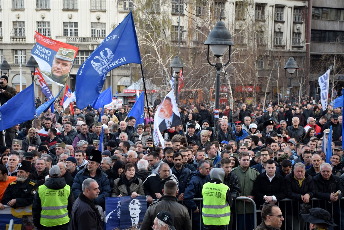 Aşırı milliyetçi açıklamalarıyla tanınan Sırp Radikal Partisi (SRS) Genel Başkanı Seselj, Sırbistan'ın başkenti Belgrad'da partisinin düzenlediği hükümet karşıtı protestoda konuştu.