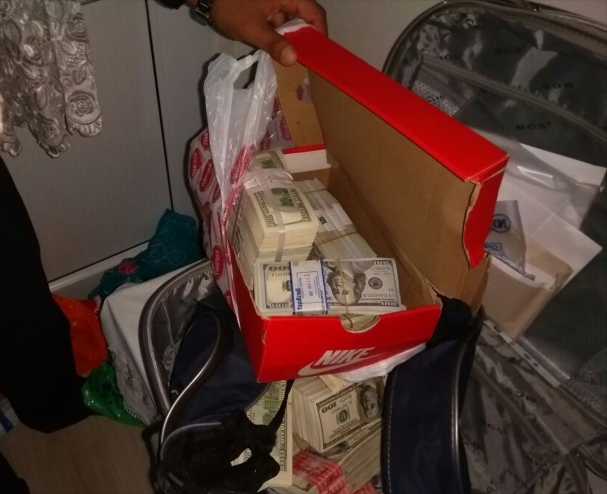 Evde yapılan aramada, valiz ve ayakkabı kutusu içerisinde saklanmış halde 990 bin dolar ve 50 bin 550 avro ele geçirildi.