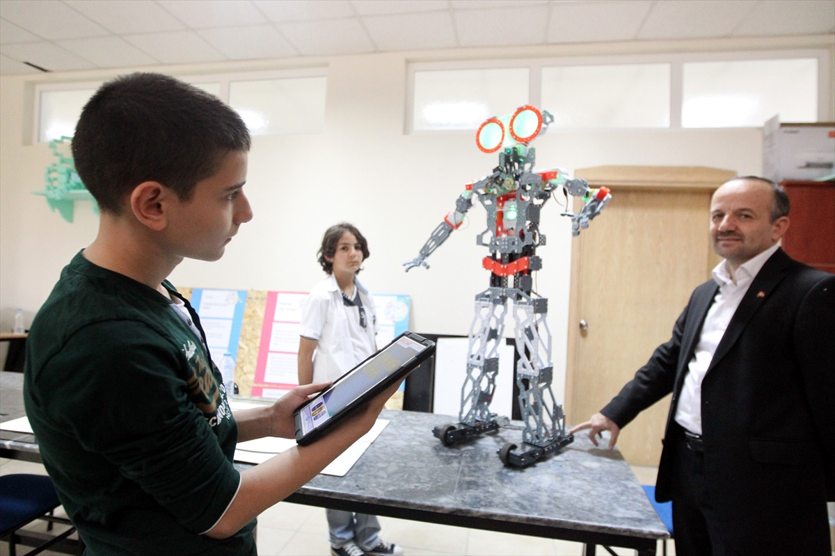 Altıncı sınıf öğrencisi Oktay Söylemez Pınar ise çok özellikli robot yaptıklarını anlatarak, "Mayın temizleyici, top atar, ışık takip eden ve ağırlık kaldırabilen robotlar da yaptık. Robot parçalarını temin ettikten sonra yazılımlarını biz üretiyoruz." dedi.