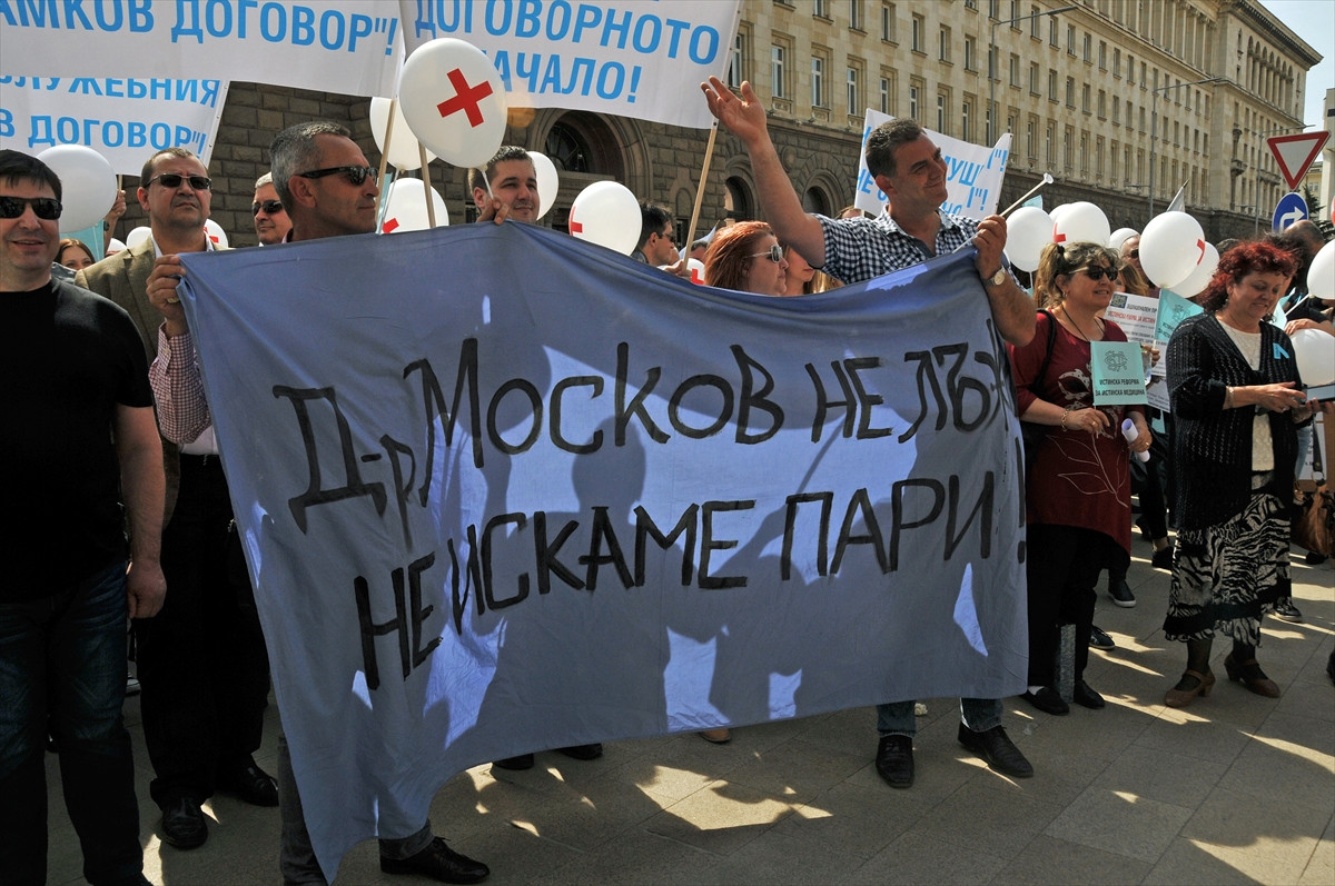SOFYA (AA) - Bulgaristan’da hükümetin sağlık politikalarını protesto eden doktorlar, başkent Sofya'da düzenledikleri gösteride Sağlık Bakanı Petar Moskov’un istifasını talep etti.