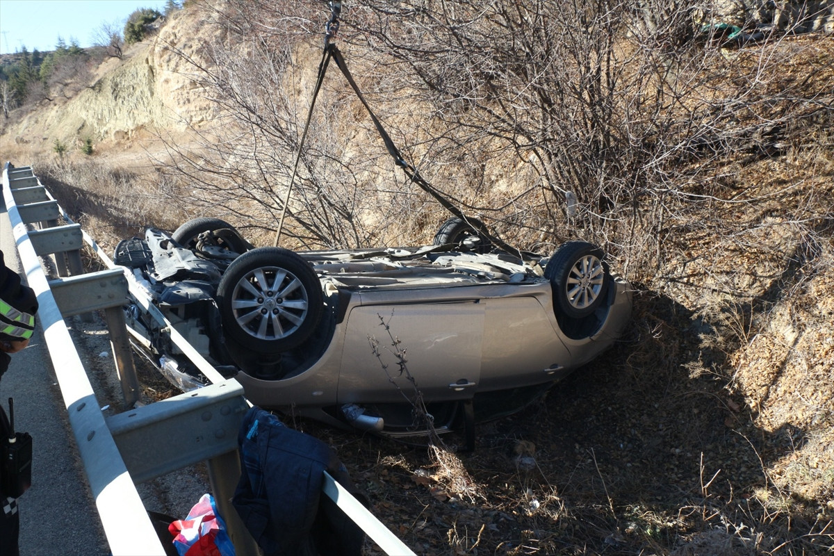 Antalya'dan Burdur'a giden Sevilay Gökçe'nin (37) kullandığı 07 P 2230 plakalı otomobil, Kurna köyü yakınlarında bariyere çarpıp devrildi.