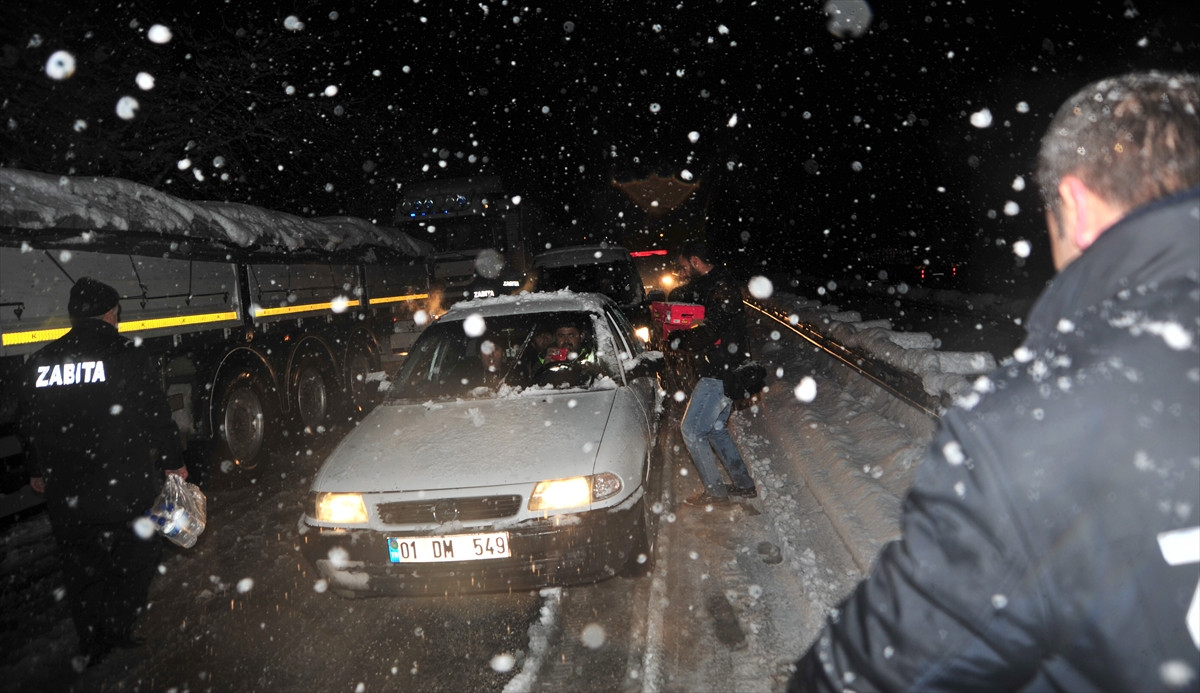 Trafik ekipleri, zincirsiz ve kar lastiği olmayan araçların sürücülerinin bölgeye geçişine izin vermiyor.