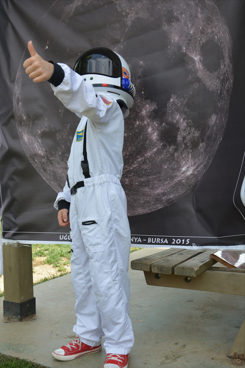 Şenlik kapsamında parka kurulan çok sayıdaki bilim atölyesini gezen vatandaşların bazıları astronot kıyafeti giyerken, bazıları da teleskop camı yapımını ilgiyle izledi.