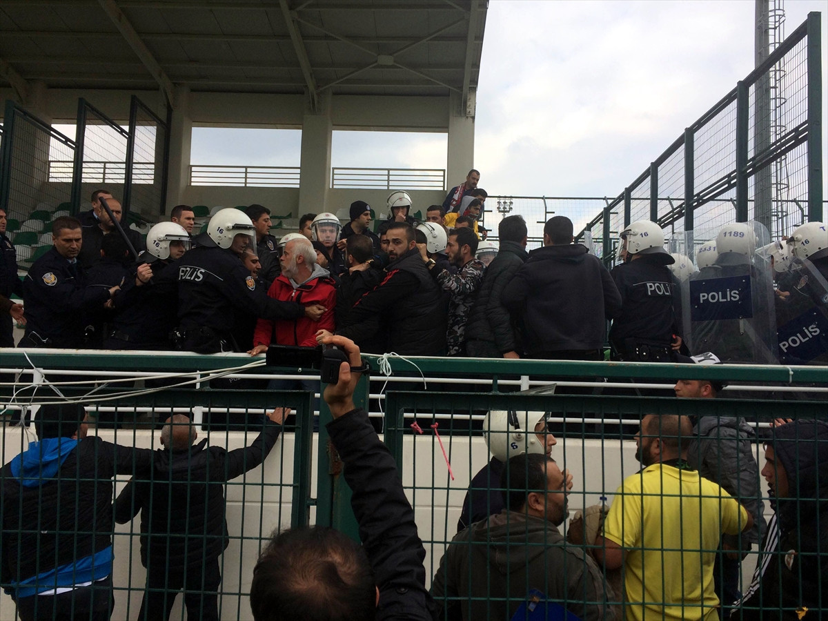 BURSA (AA) - Türkiye Bölgesel Amatör Lig 10. Grup'ta mücadele eden Bursa Zaferspor ile Yalovaspor maçında, taraftarlar arasında gerginlik yaşandı.