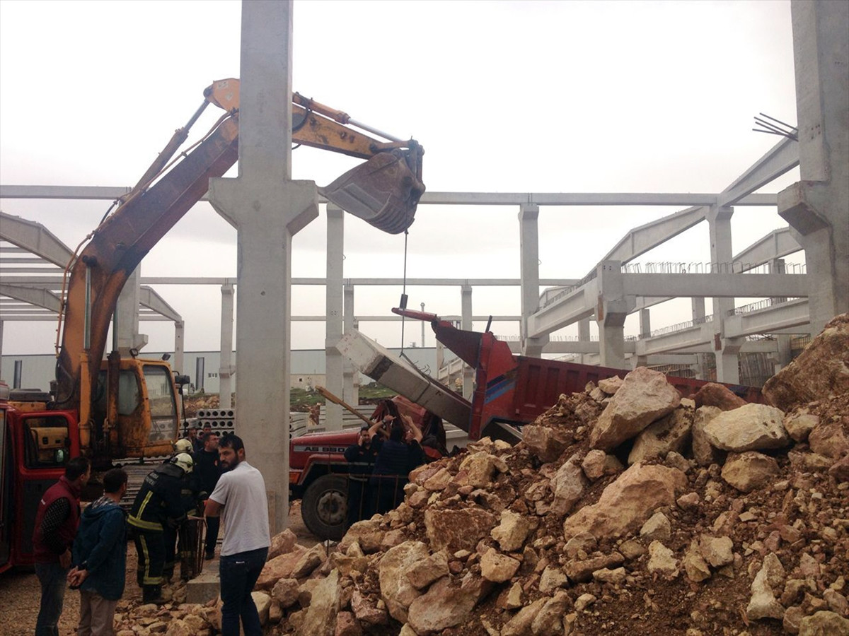 Alınan bilgiye göre, Ağaç İşleri İhtisas Organize Sanayi Bölgesi'ndeki bir fabrika inşaatına demir getiren 16 F 7500 plakalı kamyonun sürücüsü Ramiz Eriş, yükü boşaltmak için damperi kaldırdı. Bu sırada damperin çarptığı yaklaşık 6 ton ağırlığındaki beton blok, yerinden oynayıp kamyonun üzerine devrildi.