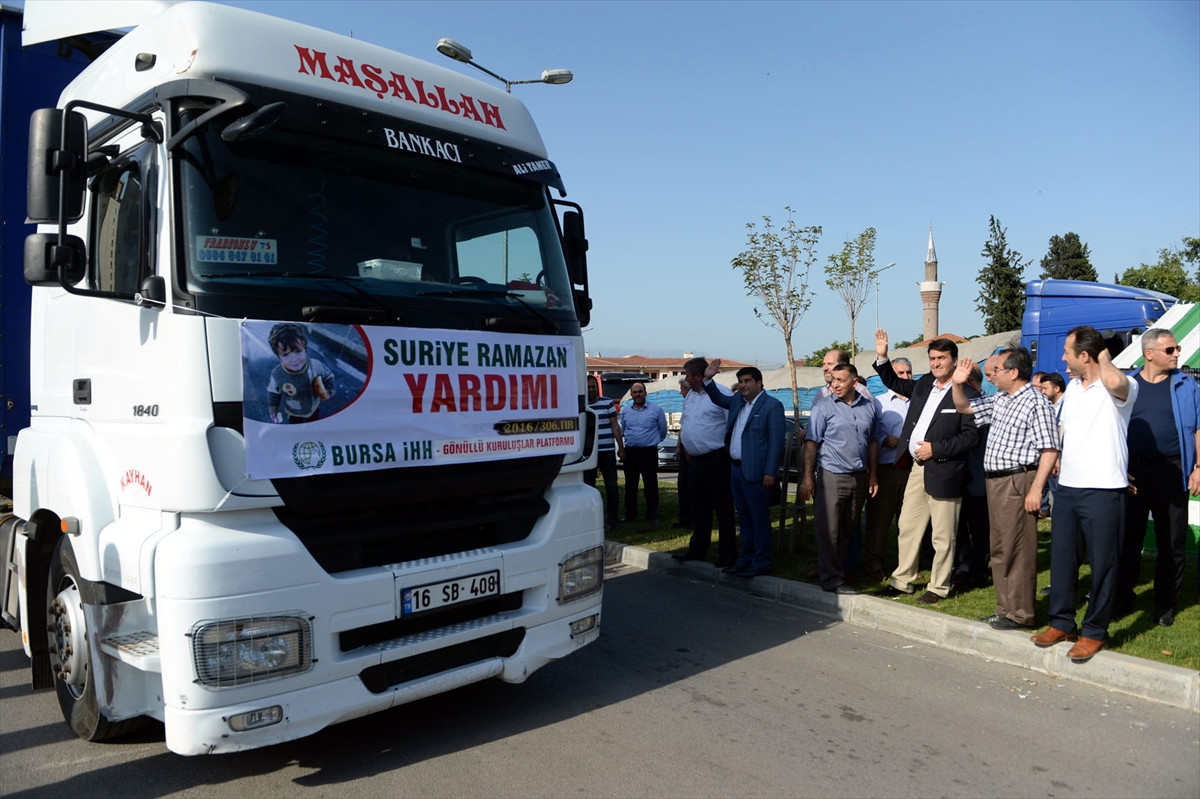 BURSA (AA) - Bursa'da, Osmangazi Belediyesi ve Bursa İHH İnsani Yardım Derneği tarafından Suriye'deki iç savaş mağdurları için hazırlanan 11 yardım tırı, bölgeye gönderildi.