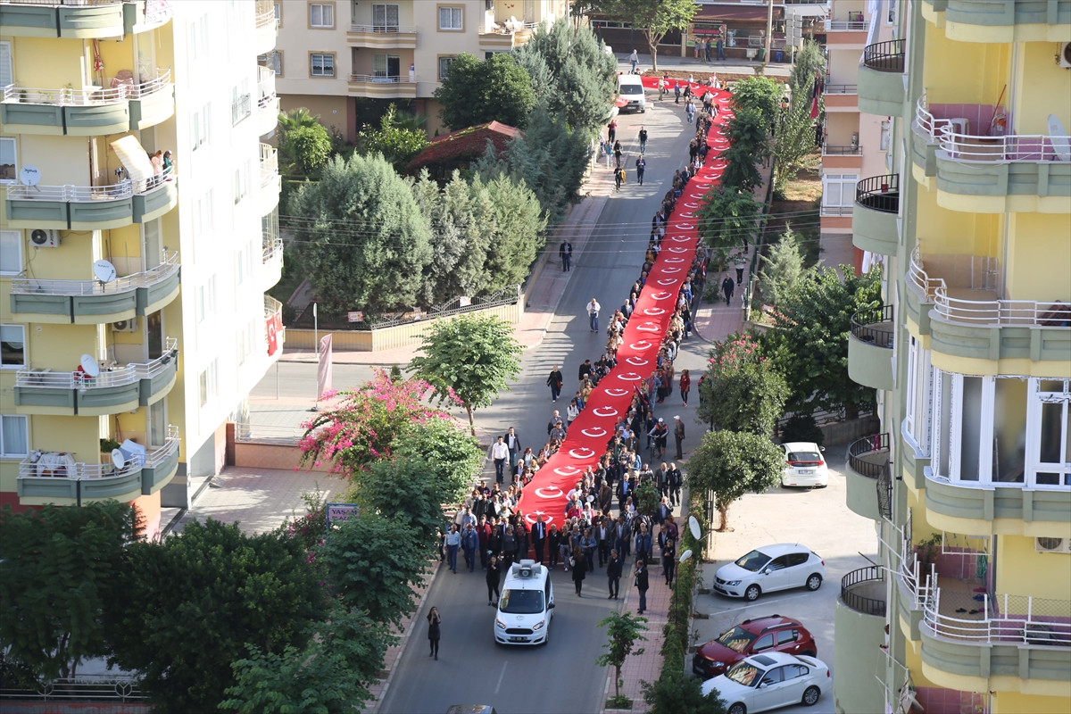Mezitli Belediyesinden yapılan yazılı açıklamaya göre, belediye ana hizmet binası önünde başlayan anma programında saygı duruşunda bulunuldu, İstiklal Marşı okundu. Daha sonra Mezitli Belediyesi ile Demokrasi Meydanı arasında oluşturulan bin 730 metrelik ''Ataya Saygı İnsan Zinciri''nde vatandaşlar uzun Türk bayrağının etrafında birleşti.