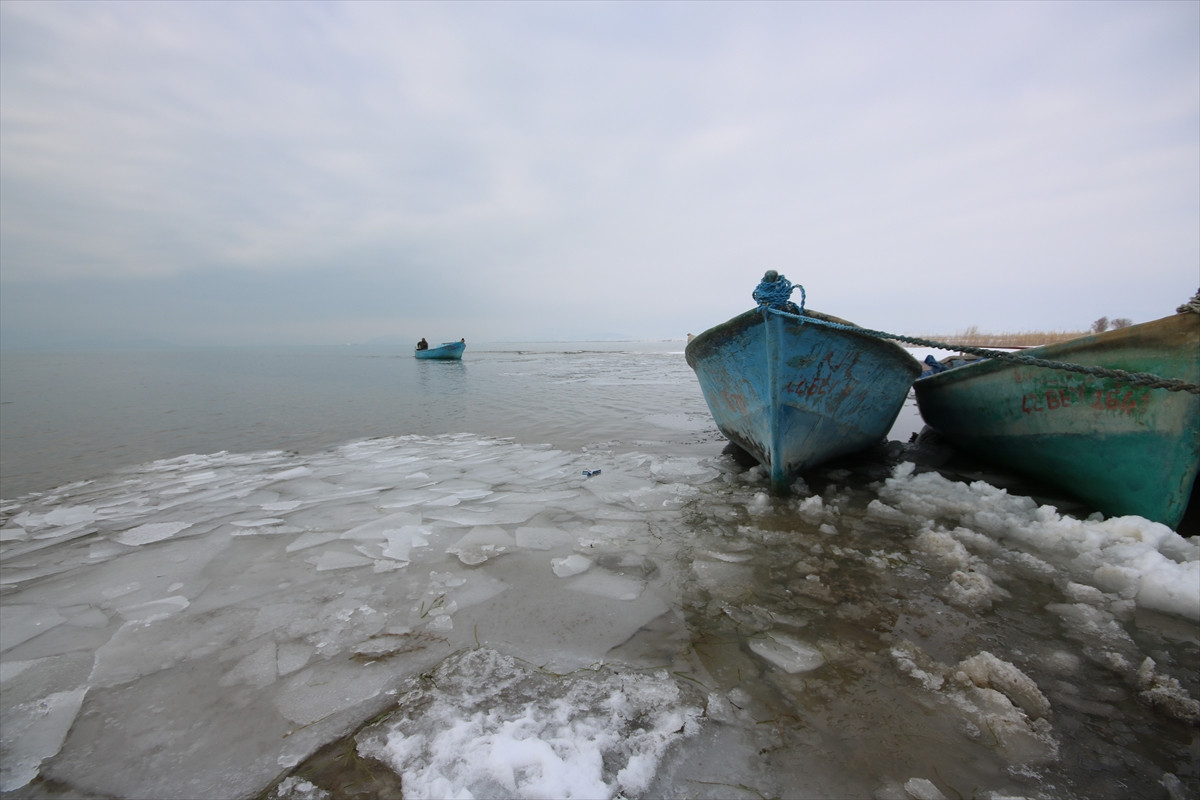 Ağır kış koşulları sebebiyle balıkçıların büyük bölümü faaliyetlerine ara verdi. Bazı balıkçılar ise buzları kırıp, tekneleriyle açıklara ilerleyerek zorlu şartlarda avlanmaya devam ediyor.