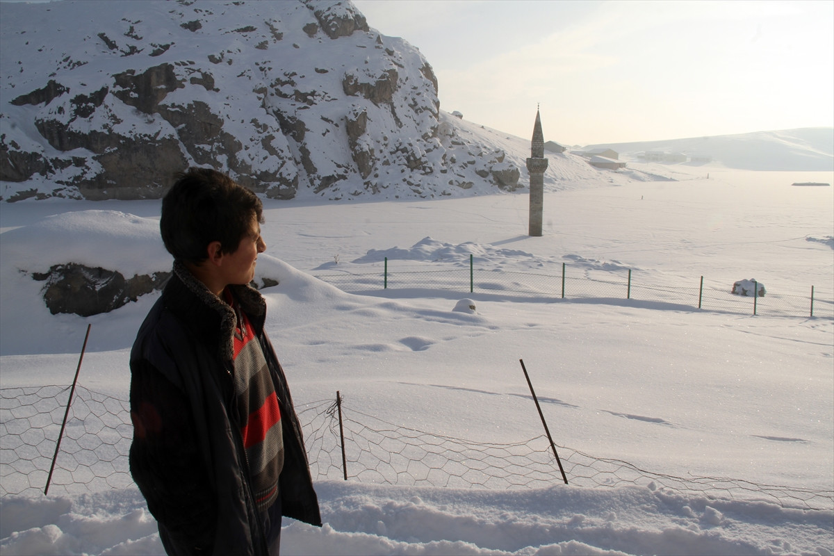 Yazın barajdaki su seviyesinin arttığını anlatan Akkaya, "Yazın baraj suyu tutulduğunda su altında kalan caminin minaresinin de yarısı su altında kalıyor. Şimdi minare buz tutan barajın içinde. Böyle bize hatıra kalmış. Minareyi görmek için ziyaretçiler yaz kış buraya gelip telefonla, fotoğraf makinesiyle ya da kamerayla minareyi çekiyorlar." diye konuştu.