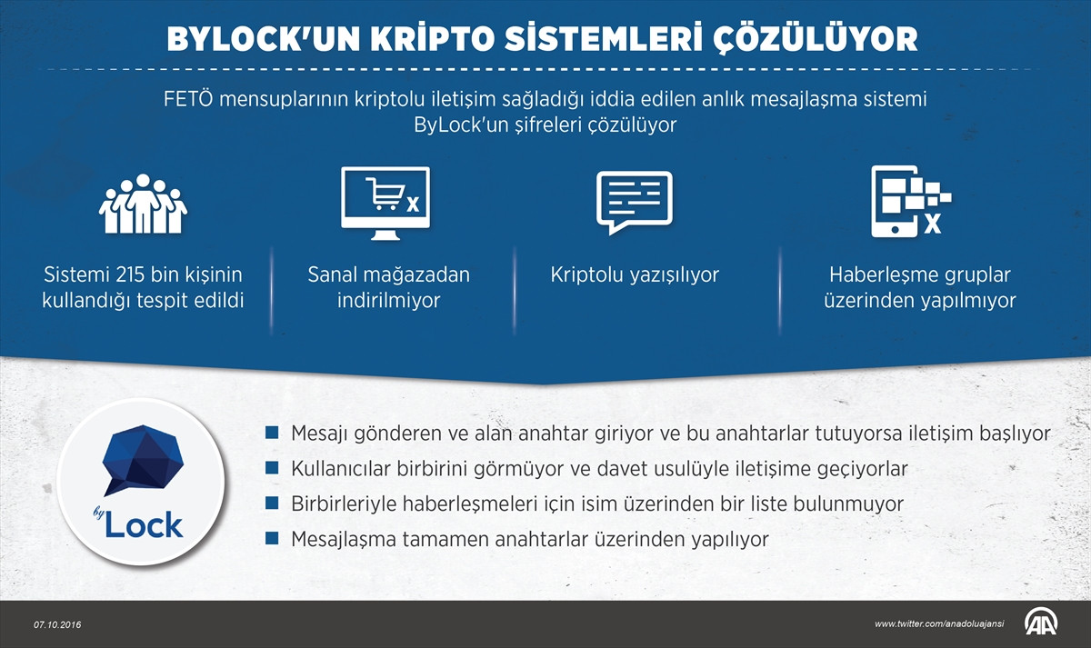 2014 aralık ayından önce bir oyun programının mesajlaşma ara yüzü olarak kullanılan uygulamanın, bu tarihten sonra FETÖ'nün Ar-Ge bölümü tarafından güvenlik katmanları eklenerek Türkçeleştirildiği ve örgüt içi haberleşmede kullanılmaya başlandığı belirlenmişti. Milli İstihbarat Teşkilatı (MİT) uzmanları tarafından şifreleri kırılan ByLock uygulaması, FETÖ'nün darbe girişimine ilişkin soruşturmada, örgüt mensuplarının deşifre edilmesinde en önemli referanslardan biri oldu.