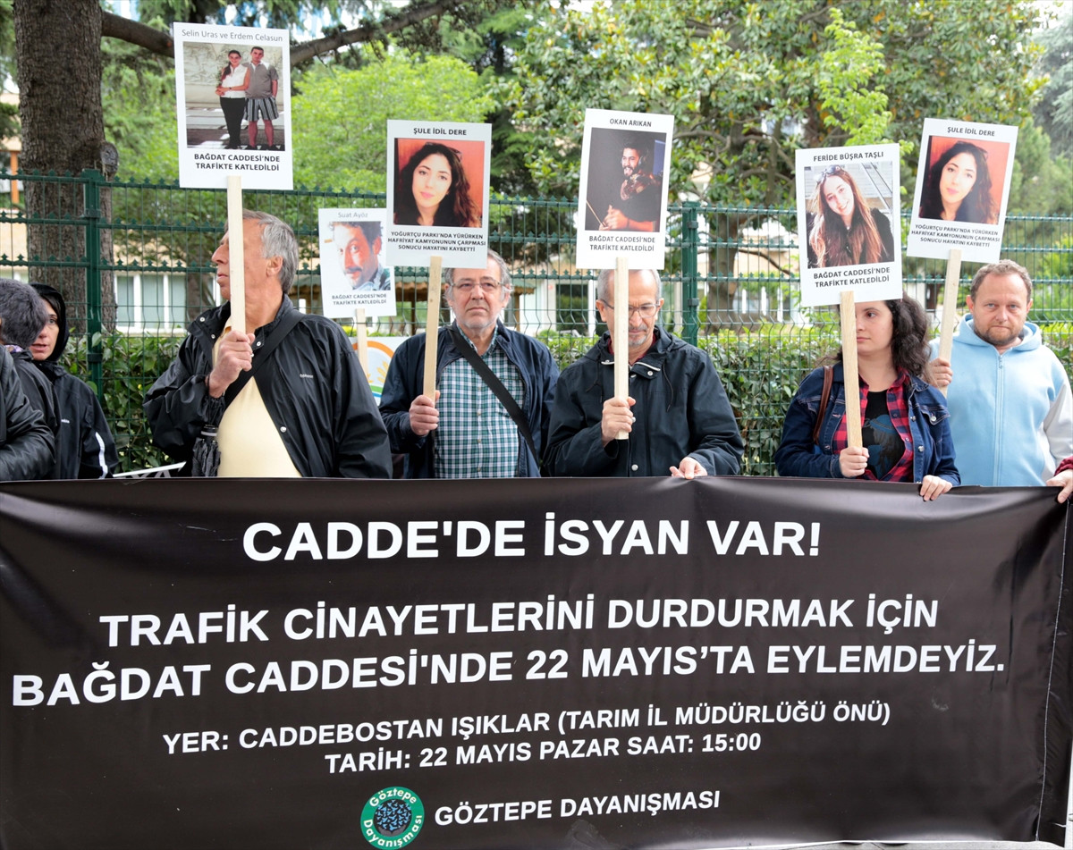 Bağdat Caddesi Caddebostan ışıklarda toplanan Göztepe Dayanışması ve kazalarda hayatını kaybedenlerin yakınları, "Cadde de ya cinayetler ya trafik duracak" yazılı pankart açarak kazalarda hayatlarını kaybedenlerin resimlerini taşıdı.