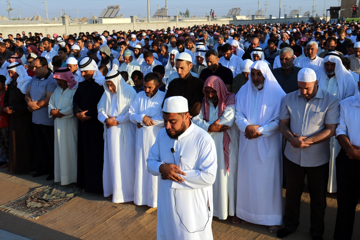 Yaklaşık 30 bin kişinin yaşadığı çadır kentte görevliler tarafından hazırlanan boş alanda saf tutan Suriyeliler, hutbenin ardından ülkelerindeki ve İslam ülkelerindeki olayların sona ermesi için dua etti. Bu sırada bazı Suriyelilerin duygulandığı görüldü. Namazın ardından Suriyeliler ve çadır kent yetkilileri bayramlaştı.
