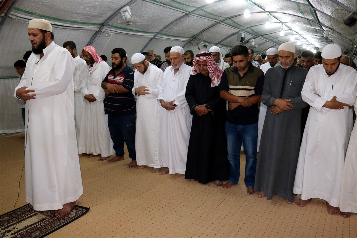 ŞANLIURFA (AA) - Şanlıurfa'nın Akçakale ilçesindeki çadır kentte yaşayan Suriyeliler, Kadir Gecesi dolayısıyla mescitleri doldurdu.
