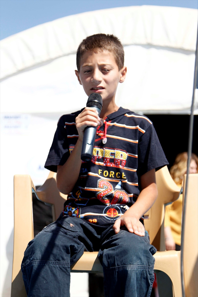 Çadır kentteki etkinlik, 3. sınıf öğrencisi Muhammed Kamil Habbub'un Kur'an-ı Kerim tilaveti ve 4. sınıf öğrencisi Muhammed Cırık'ın İstiklal Marşı'nı okumasıyla başladı.