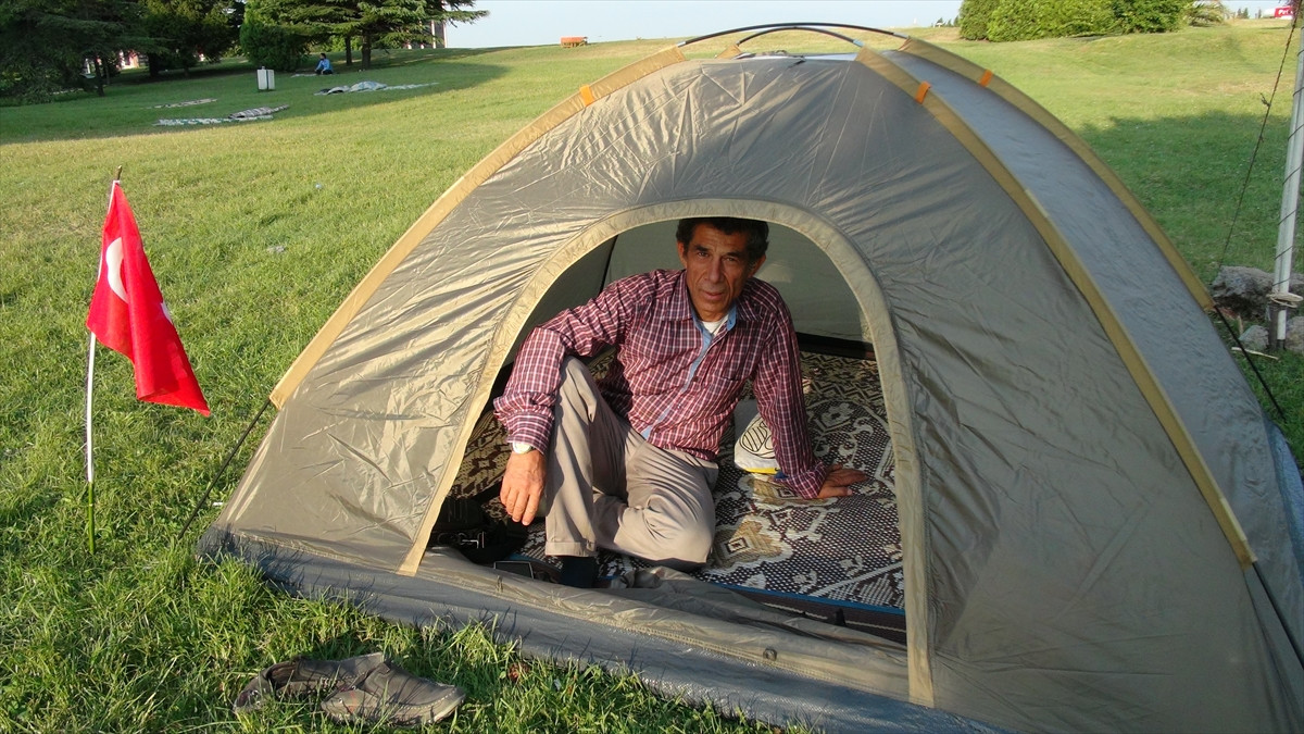İSTANBUL (AA) - Cumhurbaşkanı Recep Tayyip Erdoğan'ın, Fetullahçı Terör Örgütü'nün (FETÖ) darbe girişiminin ardından "meydanlara çıkın" çağrısına uyan Kilisli Muzaffer Yenici, "demokrasi nöbeti"ne Atatürk Havalimanının ana giriş kapısındaki yeşil alanda kurduğu çadırda devam ediyor.