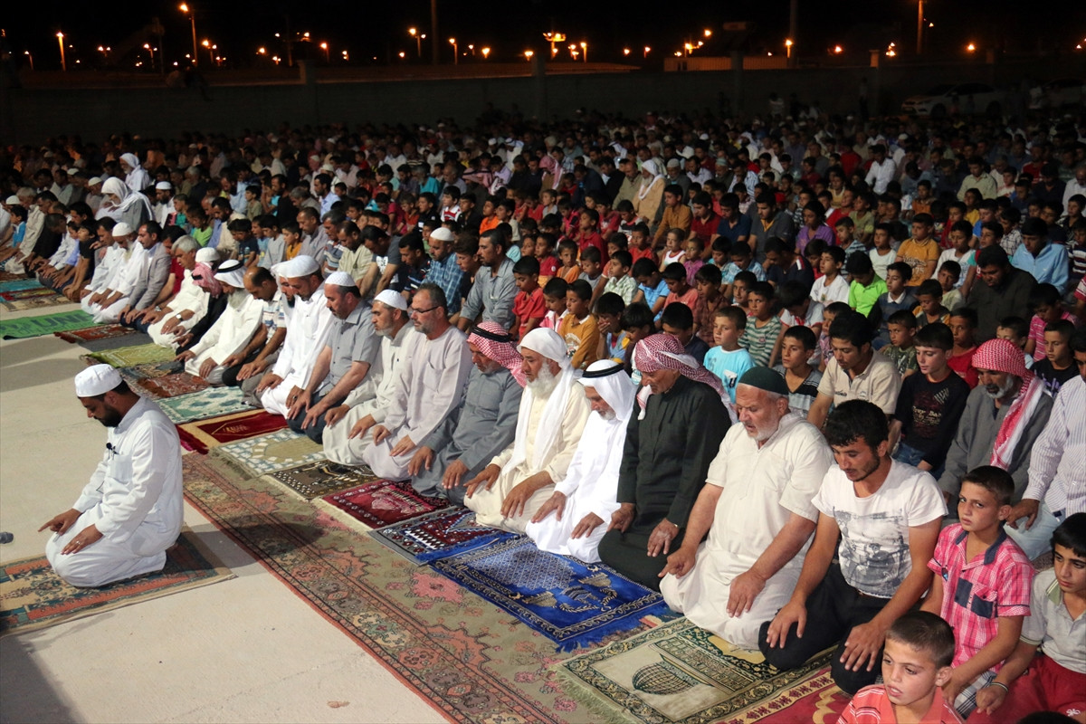ŞANLIURFA (AA) - Şanlıurfa'nın Akçakale ilçesindeki çadır kentte barınan Suriyeliler ilk teravih namazını kıldı.