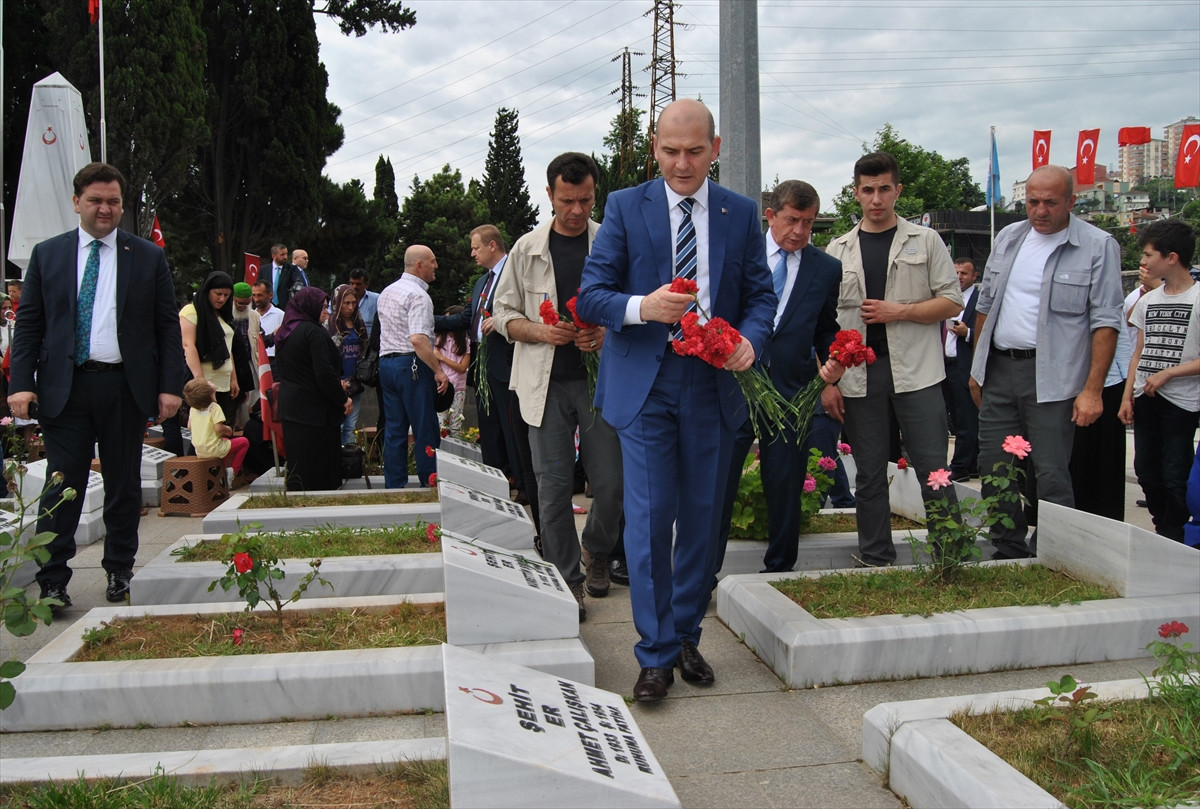 Kahvaltının ardından Sülüklü Mezarlığı'ndaki şehitliğe geçen Soylu, burada Trabzon Valisi Yücel Yavuz, AK Parti Trabzon Milletvekili Adnan Günnar, Büyükşehir Belediye Başkanı Orhan Fevzi Gümrükçüoğlu, Ortahisar Belediye Başkanı Ahmet Metin Genç, Çalışma ve Sosyal Güvenlik Bakanlığı Müsteşar Yardımcısı Mazhar Yıldırımhan, İl Emniyet Müdürü Murat Köksal, AK Parti İl Başkanı Haydar Revi, askeri erkan ve vatandaşlarla şehit mezarlarına karanfil bıraktı.