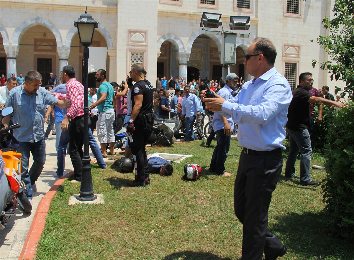 Cami dışına çıkartılan zanlı, burada da linç edilmeye çalışıldı.