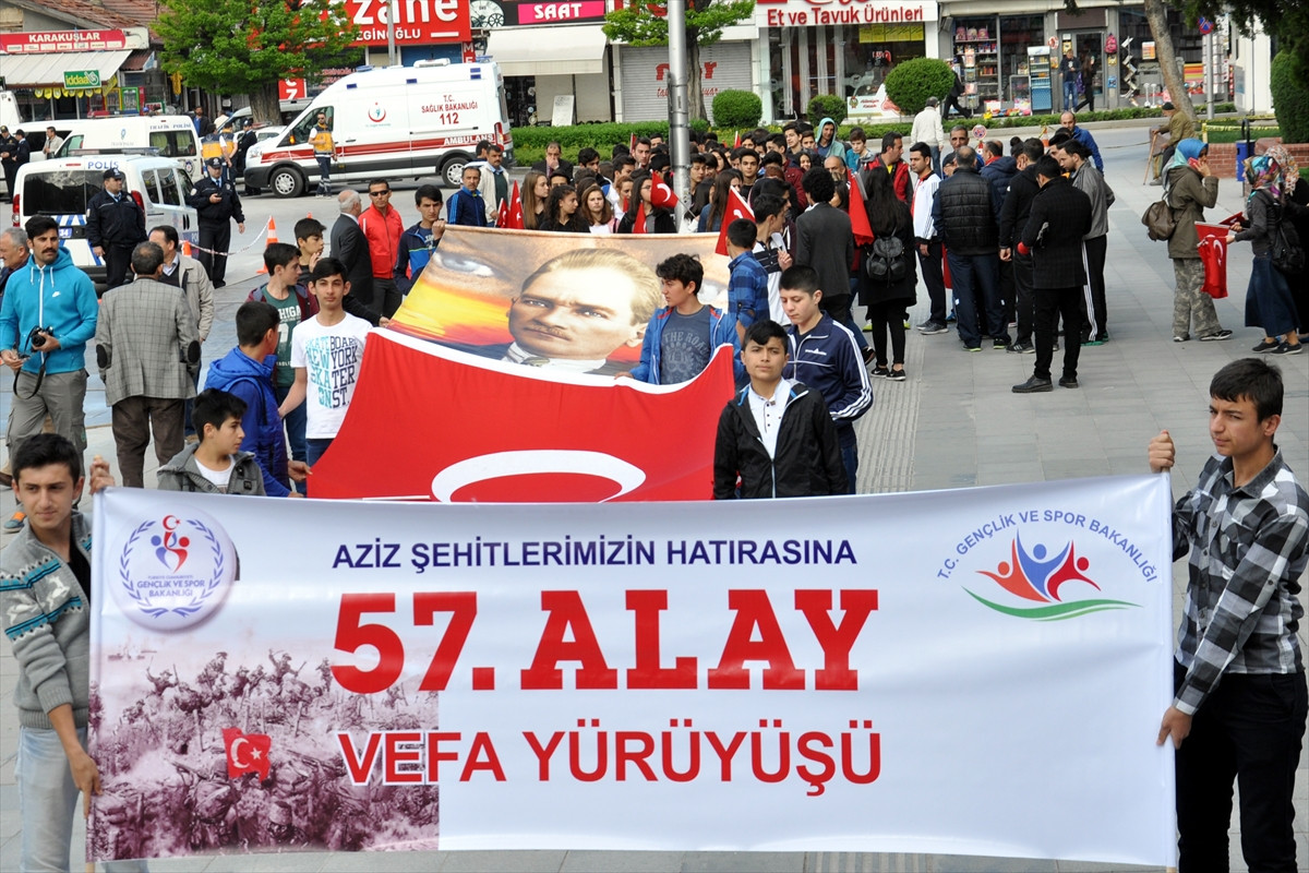 Çanakkale Kara Savaşları'nın 101. yılı etkinlikleri kapsamında, Gençlik ve Spor Bakanlığınca düzenlenen "57. Alay'a Vefa Yürüyüşü" Çorum'da yüzlerce kişinin katılımıyla gerçekleştirildi.