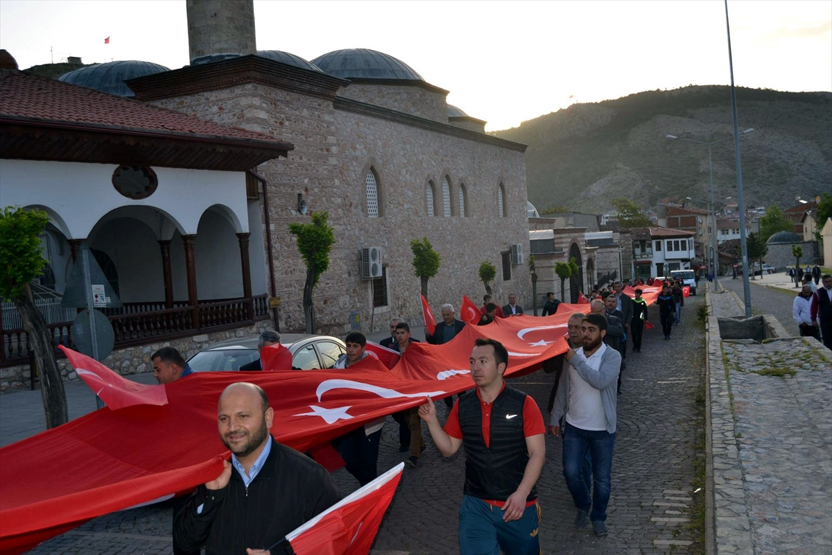 Gençler, daha sonra Türk bayraklarıyla Erenler Mezarlığı'na kadar yürüdü.