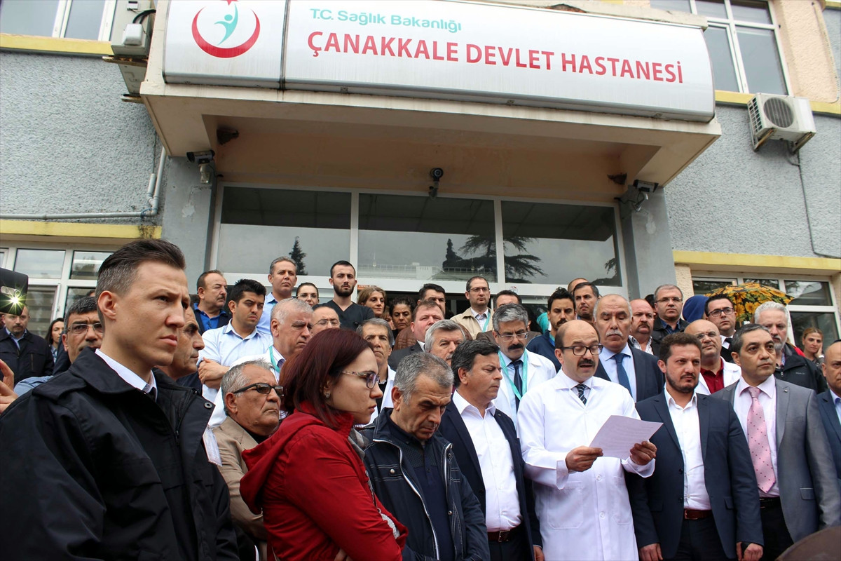 Çanakkale Tabipler Odası üyeleri de hastane önünde yaptıkları açıklamayla saldırıyı kınadı.